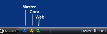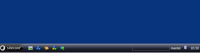 You can download the Customized Startbar module from trac: http://trac.sitecore.net/CustomizedStartbar/ (Thanks to Alistair Deneys for this module.) A good example of the use of the customized start bar is a startbar with Quick action buttons that open the Content editor for the master, web and core database.