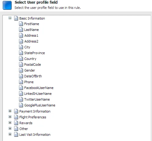 options.Text = "Select the user profile field to use in this rule.";