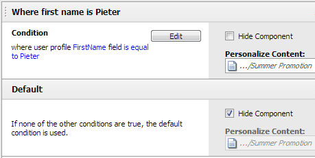 If I visit the website as a logged-in user with the firsts name Pieter the Summer sun component will appear. Otherwise the component will be hidden. Let’s visit the website as a anonymous visitor.