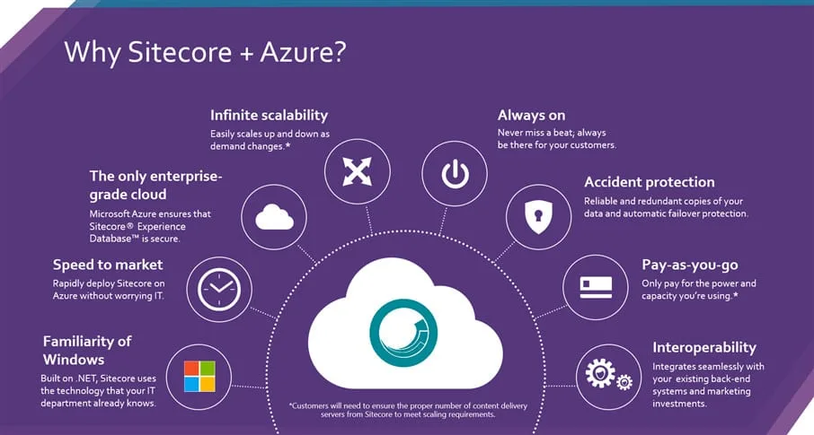 With Sitecore hosted on Microsoft Azure you will save money on hosting, maintenance, and costs of employee. You use only the hardware you need. Azure will automatically scale up and—maybe more important—down based on server load or other defined rules/thresholds. There is no need for you to maintain a big server farm. You can host a Sitecore solution without a big hardware investment up front and without the worries of hardware failure like hard disk failures, failover systems, and power outages. This also cuts down on worries about software like operating system updates, database updates, and software licenses. In short, no need for active support from IT. And I haven’t even talked about the big cost reduction that comes from increasing day-to-day work productivity around: quicker setup of DEV, QA, and live environments; out-of-the-box integrated deployment processes with Visual Studio or your own Continuous Integration/Development solution; remote debugging; and pro-active health monitoring with App Insights.